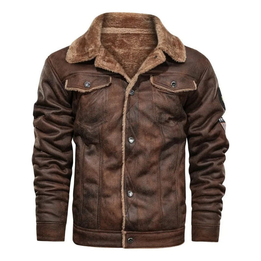 Veste en cuir rétro doublée de polaire